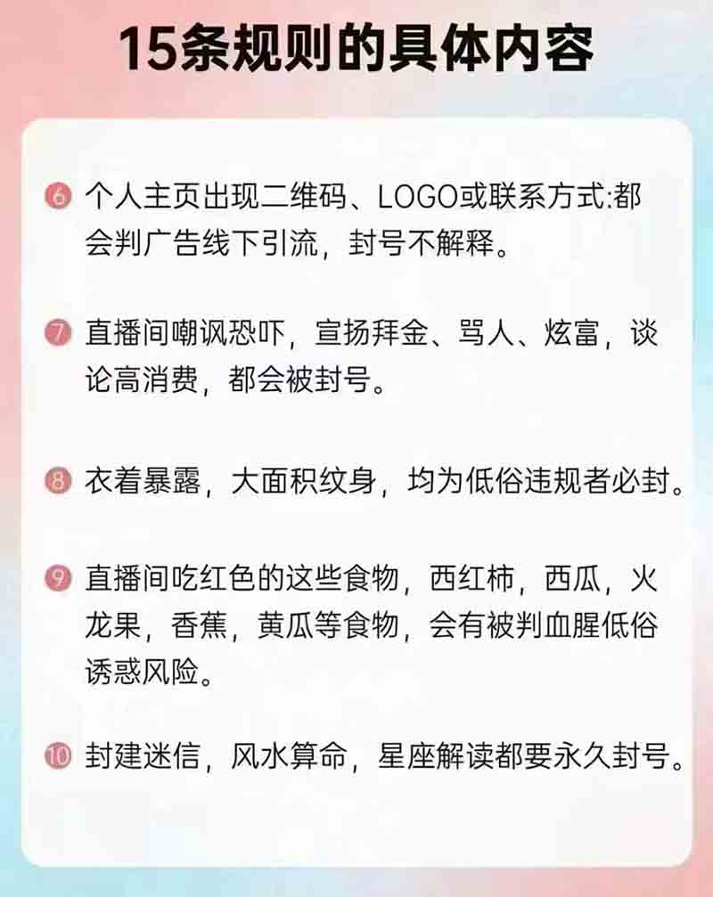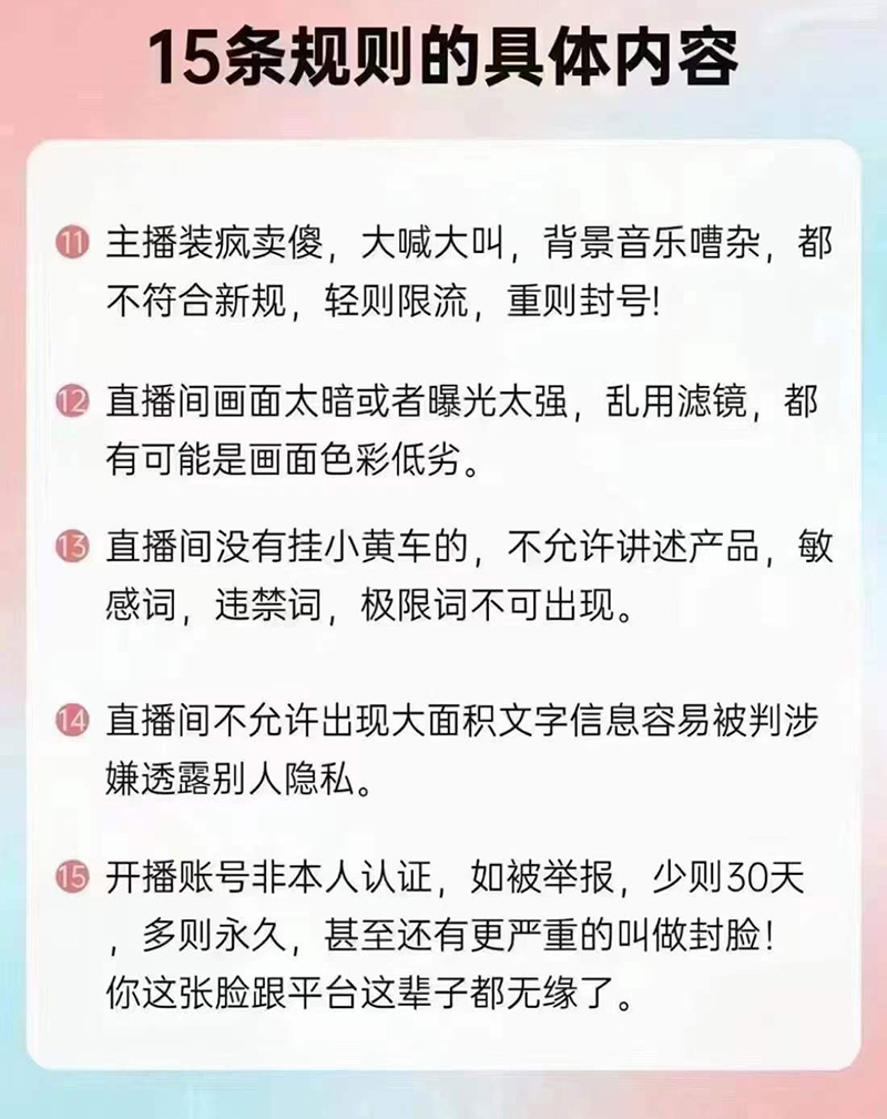 11.主播裝瘋賣傻,大喊大叫,背景音樂嘈雜,都不符合新規(guī),輕則限流,重則封號!